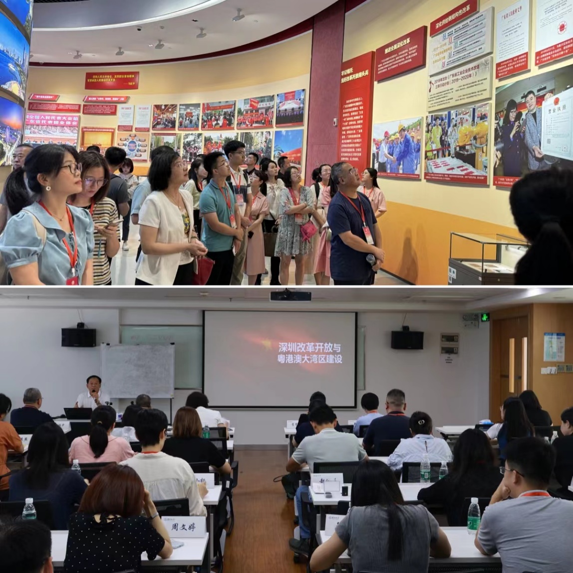 在深圳虚拟大学园,中共深圳市委党校党史党建党性教研部王冲教授以《先行示范与四个自信:深圳改革开放史》为题,为学员们带来精彩授课。从深圳经济特区的创立过程、发展历程再到粤港澳大湾区的现状与未来,带领学员体会特区的沧桑巨变和开放创新精神,鼓励年轻干部要敢于创新、勇于担当。学员们来到深圳市当代艺术与城市规划馆,参观“大潮起珠江——广东改革开放40周年展览”,以“敢为人先 勇立潮头”“增创优势 砥砺前行”和“走在前列 当好窗口”为脉络,通过文献资料、场景复原、实物展示、视频影像等形式全方位了解广东改革开放40年的壮阔历程和辉煌成就,鼓舞学员从伟大改革开放精神中汲取攻坚克难推动事业发展的智慧力量。