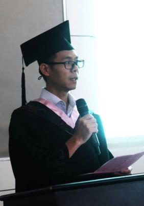 刘晓兵同学作为毕业生代表发言,他回顾了在校期间学习、生活的点滴细节,畅谈了在研究院的收获和感悟,表达了对母校和老师的感激之情以及对同学们之间友情的珍惜。他表示,在未来的人生道路上,厦门大学赋予大家的“自强不息,止于至善”的精神品格将使大家终身受益。