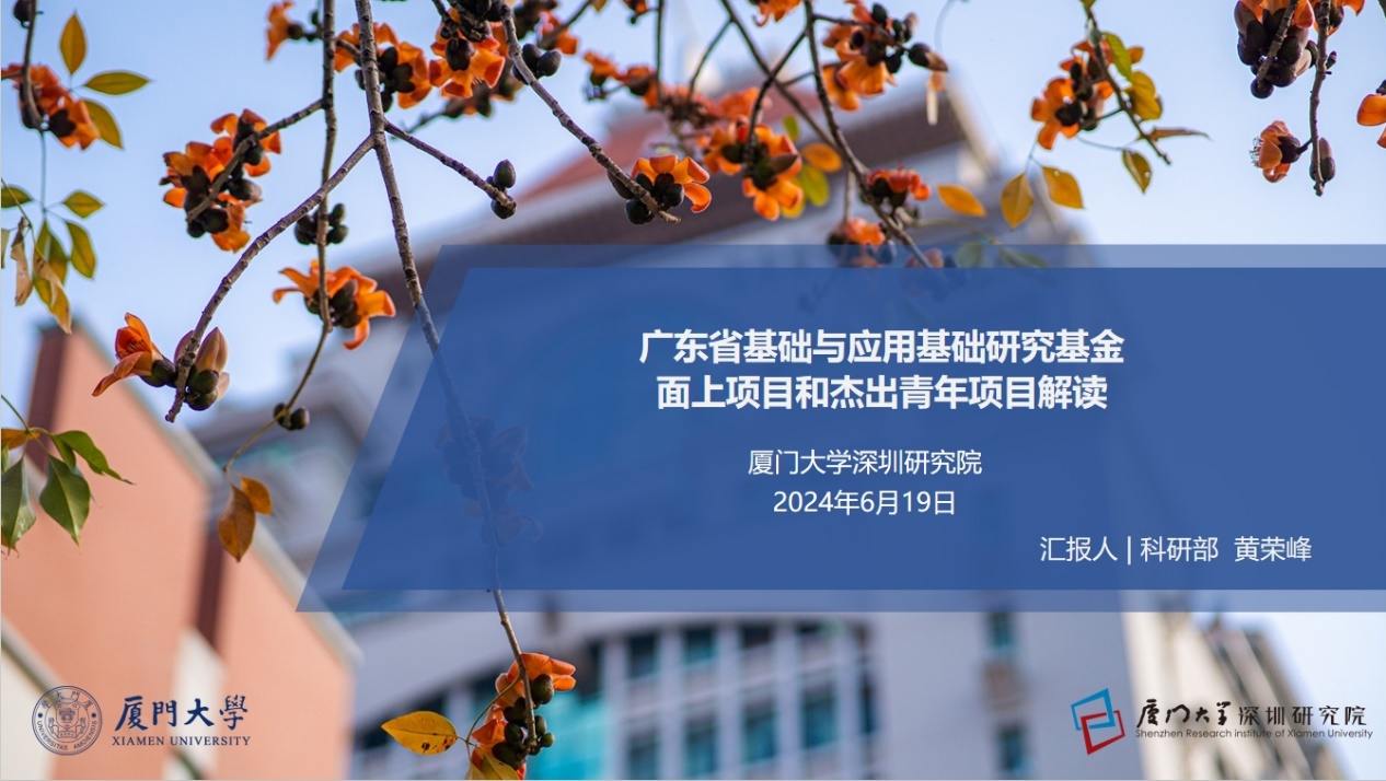 6月20日,厦门大学深圳研究院于深圳虚拟大学园A602线上组织召开2025年度广东省自然科学基金面上项目和杰出青年项目解读会。
