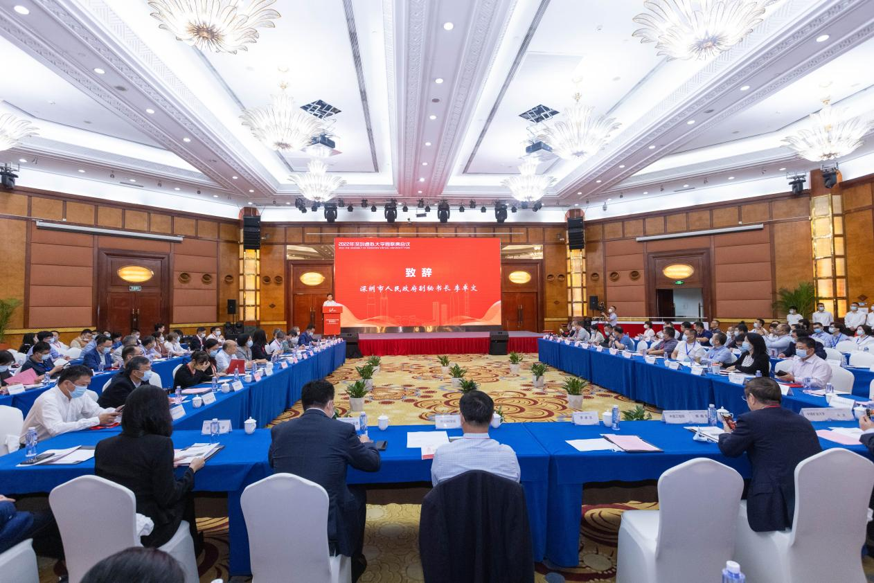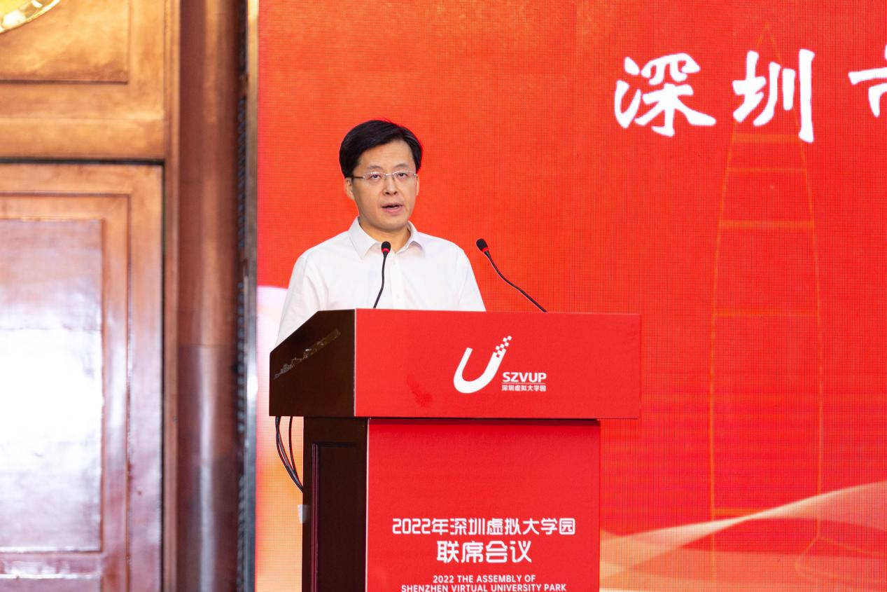 深圳市人民政府副秘书长李卓文同志致欢迎辞。他指出,深圳虚拟大学园是促进教育、科技、人才和产业协同发展的典范,自成立以来持续推动国内外一流大学与深圳科技产业融合发展,集聚了68所国内外知名院校,建成78家市级以上重点实验室和工程实验室,孵化科技企业1700多家,累计培育各类人才约44.5万,为深圳经济社会高质量发展做出重要贡献。他表示,深圳将大力支持虚拟大学园建设发展,推动产业链、创新链、教育链、人才链深度融合,进一步推进教育强国、科技强国、人才强国建设。