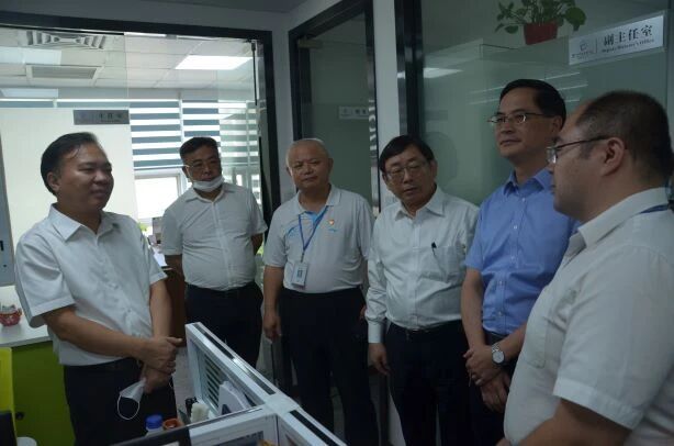 陪同校领导调研的随行人员还有学校校友总会荣誉理事黄良快、管理学院党委书记邱七星、教育发展基金会秘书处秘书长曾云声、校友总会秘书处副秘书长王智兰等。