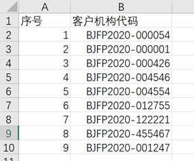 观察发现,客户机构代码前面部分都相同,均为’BJFP2020-‘,仅后6位数字有变化。有没有什么方法能快速格式化填充呢,答案是肯定的。