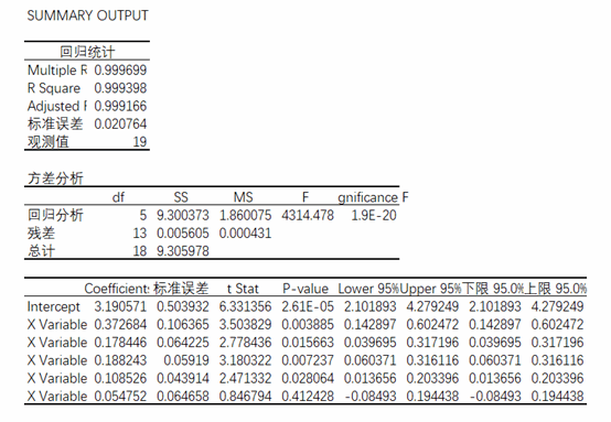 第二步:点击 数据-数据分析-选择回归分析-选择Y值输入区域和X值输入区域-选择结果输出区域-确定,一份回归分析报告就生成了。