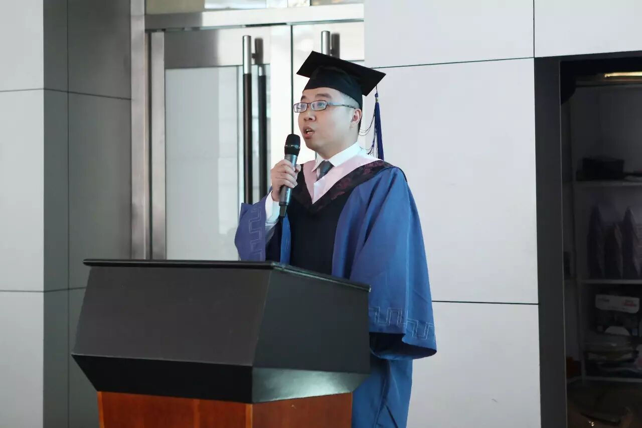会前,在温馨的歌声伴奏下,毕业生们欢聚一起、身着硕士服、合影留念。10点30分,在熟悉激昂的校歌声中、主持人宣布典礼正式开始。校长助理滕伯刚代表学校对毕业生们表达衷心的祝贺和殷切的期望,希望大家在以后的工作生活中,不管遇到什么困难都别忘身后有一个坚强的后盾——厦门大学。首席代表黄良快代表深圳研究院对毕业生们表示祝贺,感谢同学们在学习期间对研究院工作的支持,高度赞扬大家刻苦学习的精神,希望大家能常回母校看看,多参加校友交流活动。