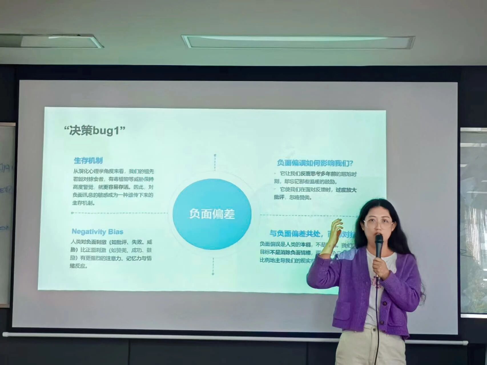 课程围绕 “认识情绪、破解认知误区、掌握情绪调节工具” 三大核心模块展开,兼具理论深度与实践价值。在 “认识情绪” 环节,周老师强调负面情绪并非“洪水猛兽”:焦虑是风险的预警,愤怒是边界被侵犯的信号,悲伤是寻求支持的诉求——每一种情绪都有其功能与合理性。她指出,情绪包含生理反应、主观体验和外部行为三个层面,而接纳是实现情绪自洽的第一步。针对青年群体常见的思维陷阱,课程系统拆解了 8种认知扭曲,如“因一次失败就否定全部”的过度概括、“未经验证便下结论”的妄下判断、“忽视正面反馈”的否定积极等。周老师通过实例,引导学员识别自身的非理性认知,避免陷入片面思维。课程设置了互动任务,要求学员每天记录 “三件好事” ,培养发现与品味积极微光的习惯。在 “情绪调节工具” 板块,周老师借助经典寓言,生动阐释了情绪ABC理论,并传授了积极心理学的实用技巧,引导学员转换认知视角,以更乐观、更具建设性的思考来激发积极情绪与正向行为的反应。