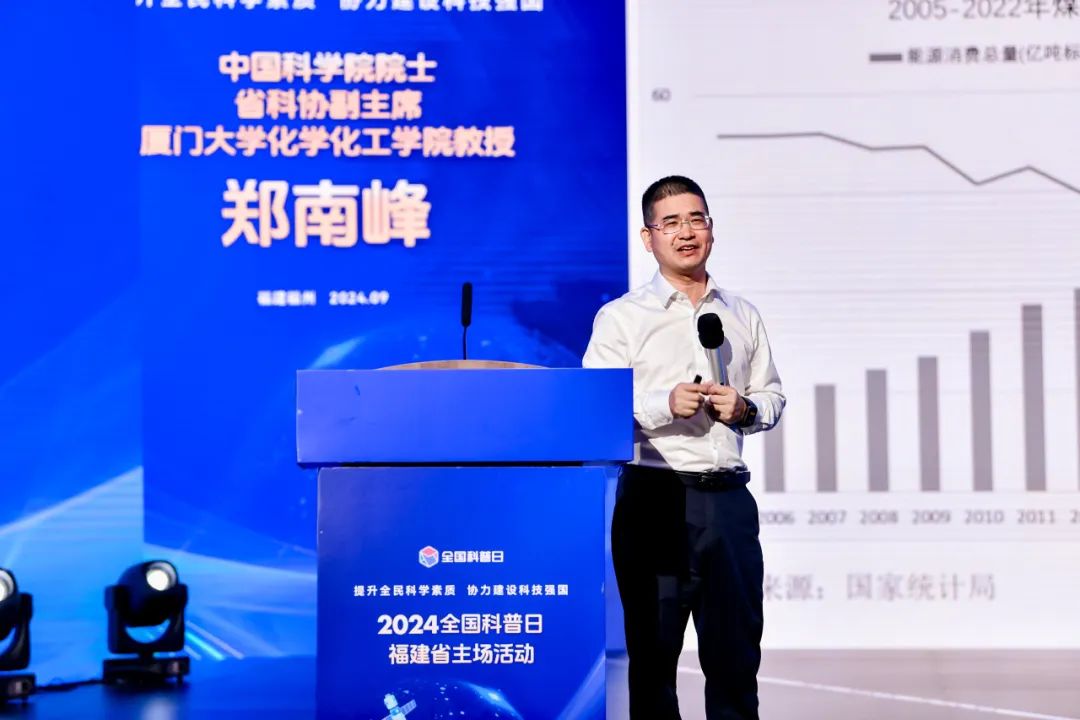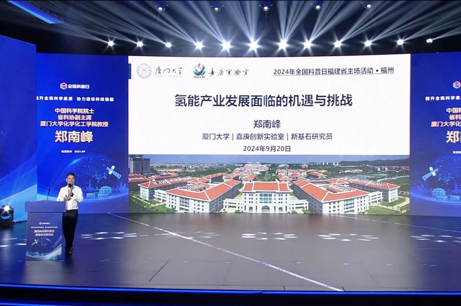 9月20日,2024年“全国科普日”福建省主场活动启动仪式在福州举办。中国科学院院士、嘉庚创新实验室主任、厦门大学化学化工学院郑南峰教授入选福建省第七批“闽江科学传播学者”。他还应邀参加新质生产力科普专项行动,作题为《氢能产业发展面临的机遇与挑战》的科普报告。