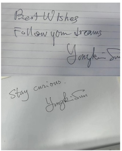 春风化雨,润物无声。分享会在同学们不舍的掌声中落下帷幕。会后,同学们纷纷上前向孙老师索要签名、合影留念,以此鼓舞自己保持好奇,保持热爱,不惧难关,做好科研。在这小小的房间里,一位平易近人的学长,还有他的一群迷弟迷妹们,将铭记校主陈嘉庚先生“感恩、责任、奉献”精神,继承发扬厦门大学“自强不息、止于至善”校训精神的崇高理想,在科研的道路上锲而不舍,为国分忧,为民造福。