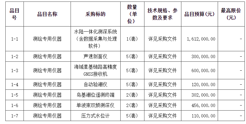 1、海洋测绘装备能力建设采购项目(二次)招标公告。