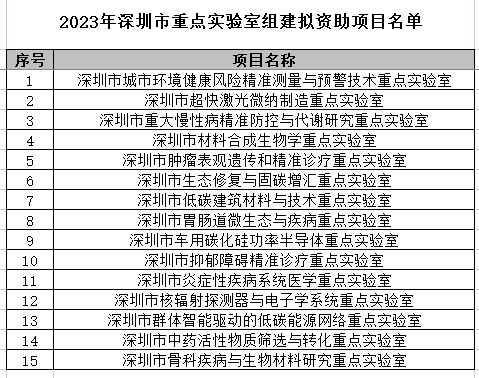 1、深圳市科技创新委员会关于2023年度市重点实验室组建拟资助项目的公示。 3