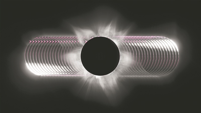 2023年4月20日,在大洋洲埃克斯茅斯拍摄的日全食。它由多张图片合成,全景式地展现了从日全食的第二次接触前到第三次接触后所发生的各种现象,包括钻石环、倍里珠、色球层、日珥和日冕等。邓景豪 摄