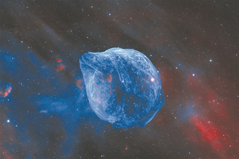 2024年1月10日,在四川稻城县拍摄的海豚星云。它的中心有一颗沃尔夫·拉叶星正在以极快的速度喷出超热恒星风,使其看起来像一只微笑的海豚。冯鑫 摄