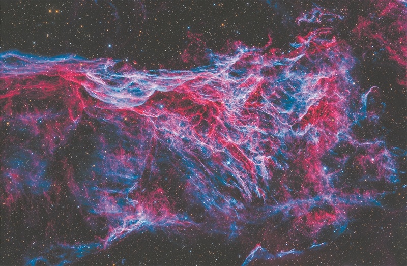 2024年8月26日,拍摄于四川稻城县的匹克林三角星云。它是面纱星云中一个相对较为暗淡的区域,由天文学家威廉·弗莱明在1904年发现。面纱星云是一颗大质量恒星死亡爆炸后形成的遗迹。于楚弘 摄