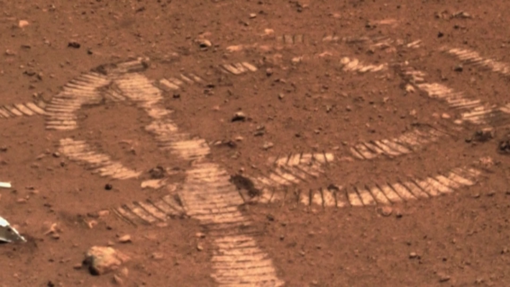 祝融号行驶的车辙清晰可见(来源:中国载人航天工程办公室)
